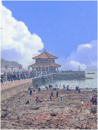 栈桥是青岛地标性建筑之一,尽头是双层八角楼的回澜阁,是观赏海景和拍照的好地方,栈桥两边有铁链护栏和莲花路灯,可漫步于栈桥海滨。