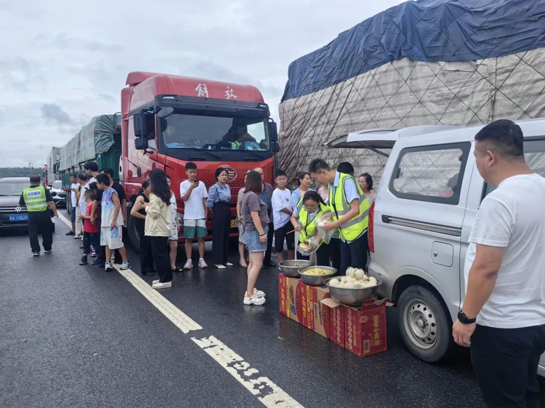 “当时我们被困在这里,心情特别焦急,没想到服务区的工作人员这么贴心,给我们送来了热乎乎的泡面、鸡蛋、和菜夹馍,真的太感动了。”一位货车司机感慨地说道。