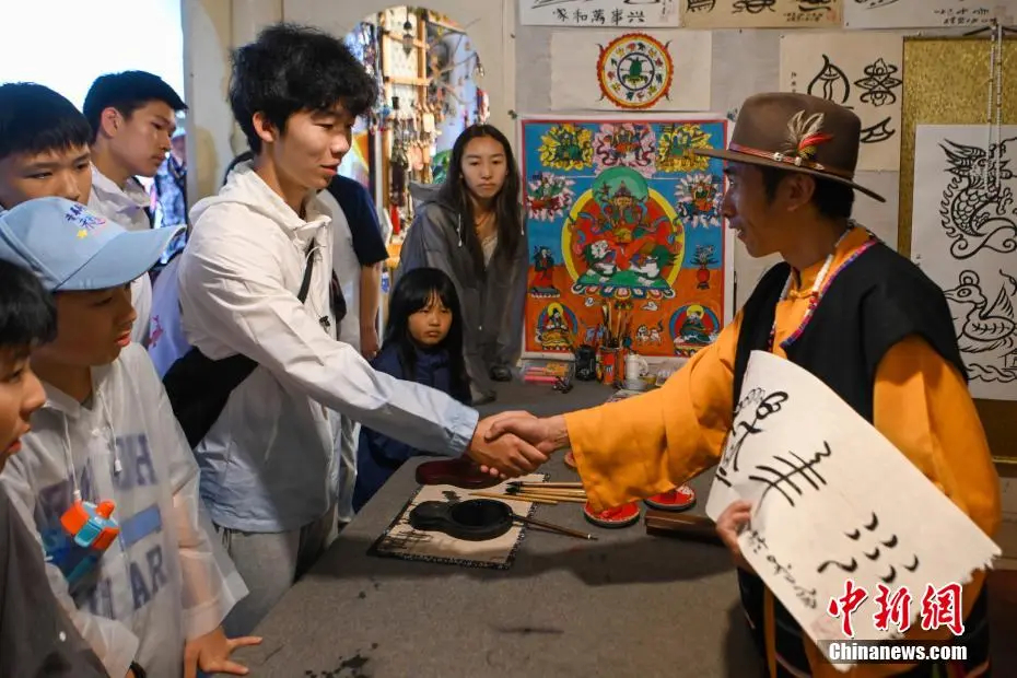 图为华裔青少年体验东巴文化。中新社记者 李嘉娴 摄