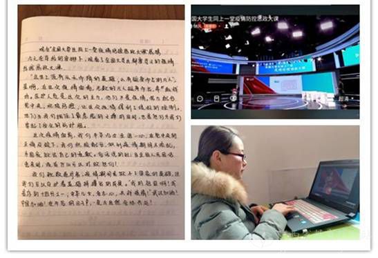 收看“思政大课”后,该院学生纷纷表示,在举国上下万众一心、众志成城做好新冠肺炎疫情防控工作的特殊时刻,疫情防控“思政大课”就像是一场对大学生思想政治教育的“及时雨”,对学生来说是一场思想的大洗礼,更是一次很宝贵的提升。上完这节思政课后,我们不仅看到了病毒的肆虐与无情,更看到了党和国家、全国人民的奋斗和付出,彰显出了中国速度、中国力量以及中华民族的强大凝聚力。作为青年大学生,我们坚信在中国共产党的正确领导下,中国人民万众一心,众志成城,一定可以战胜病魔。我们还要有明辨是非的“慧眼”,时刻警惕对中国的不实诋毁,不忘初心,守望相助,在大战中坚定信心、不负韶华,共同为打赢这场战“疫”贡献力量。