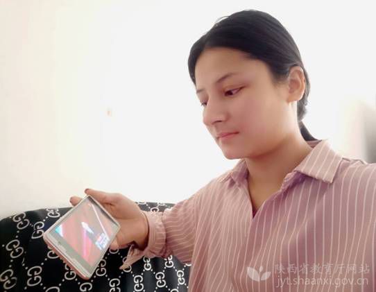 安康学院经济与管理学院2019级1班学生冉依兰木·尔肯在收看思政大课直播课