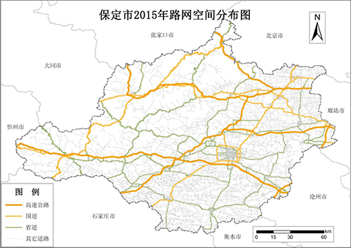 保定市201530米栅格土地利用数据、1:1万水系与道路网数据
