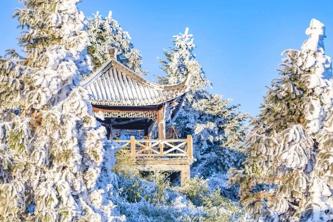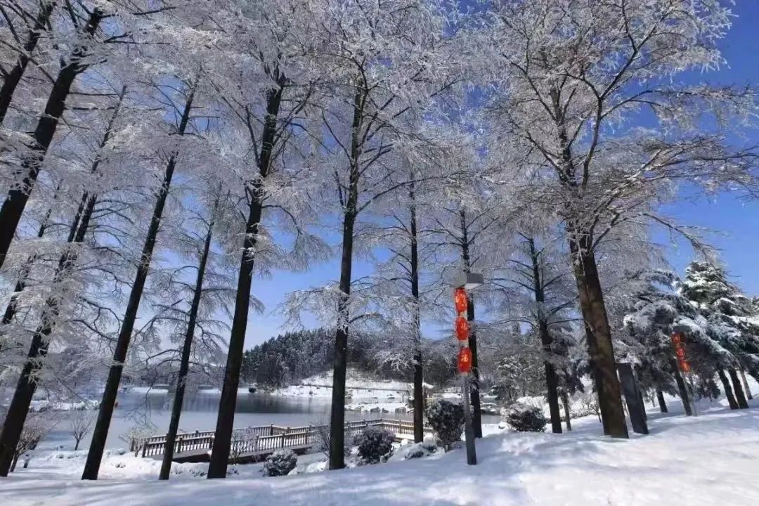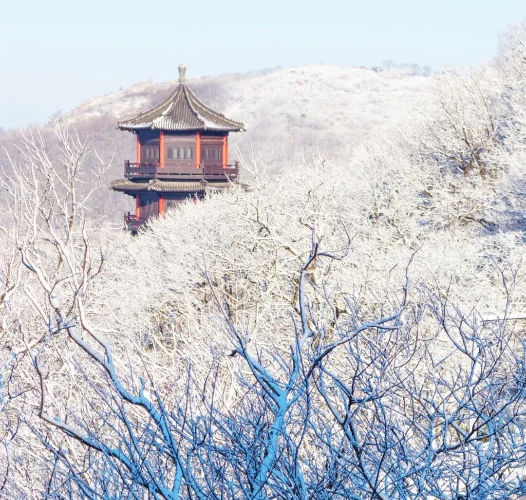 冬日的敕木山,用挂满冰晶的树枝,向人们展示迷人的北国风光,如真如幻,恍若仙境。在这片银白的世界里,开出令人惊艳的“花”,降雪时如梦如幻,雪化时喧闹似锦。郁郁葱葱的树木与雪白的雾凇交相辉映,四野冰封雪裹,漫山雾凇缭绕,如同置身北国。