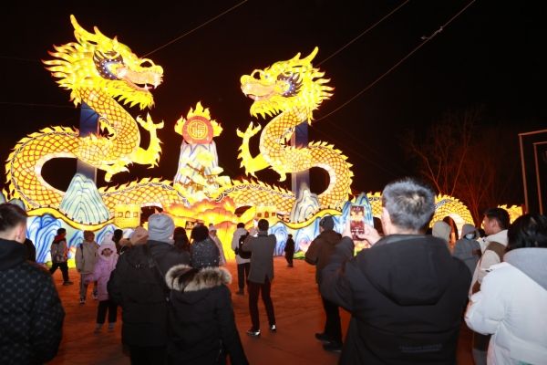 龙腾盛世。在温暖的温室大棚围炉煮茶听京韵大鼓,在喷泉广场观看威风锣鼓、彩狮贺春,在国风舞台赏川剧变脸,在非遗市集浏览艺术产品……除绚烂的灯组外,灯会还打造戴河烟火巷美食街区与非遗市集,全天布置近百场精彩演出,并推出极具地方特色的百余种非遗产品。飞车杂技、非遗演出、皮影戏、国潮舞蹈、街头杂耍、舞龙舞狮、猴戏、相声、京韵大鼓等串联起全景区每个角落,让市民游客观灯的同时享受丰富的文化大餐。
