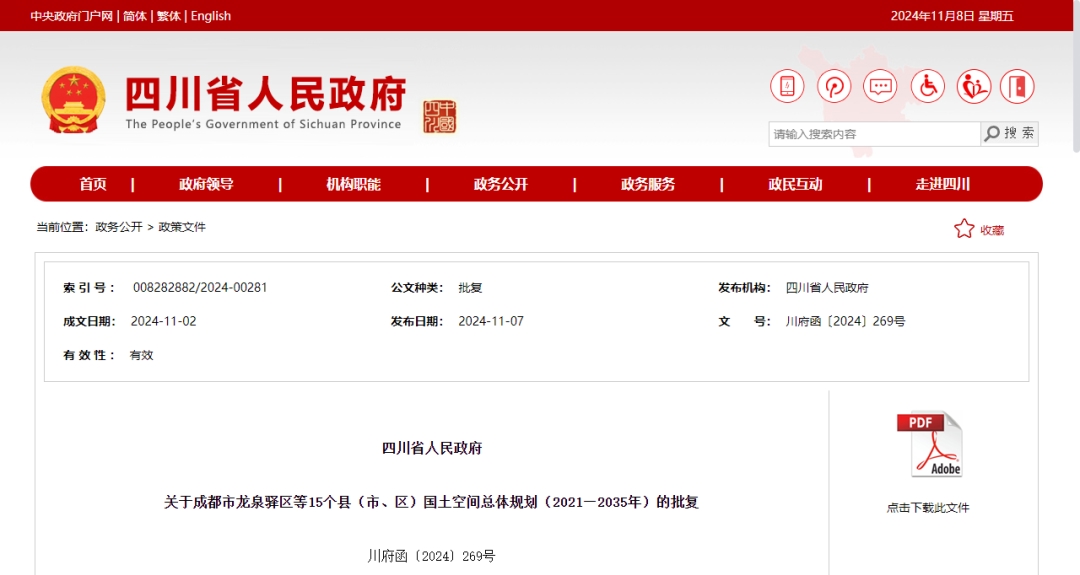 关于成都市龙泉驿区等15个县(市、区)国土空间总体规划(2021—2035年)的批复