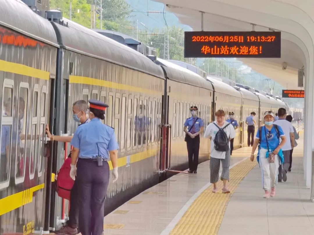 2021年9月18日,华山车站迎来首列“复兴号”动集动车组,不仅恢复了客运业务,而且跨入动车时代。此外,还面向西安、北京、广州、上海、杭州等热门方向,日均办理客运列车9列,发送旅客700余人。