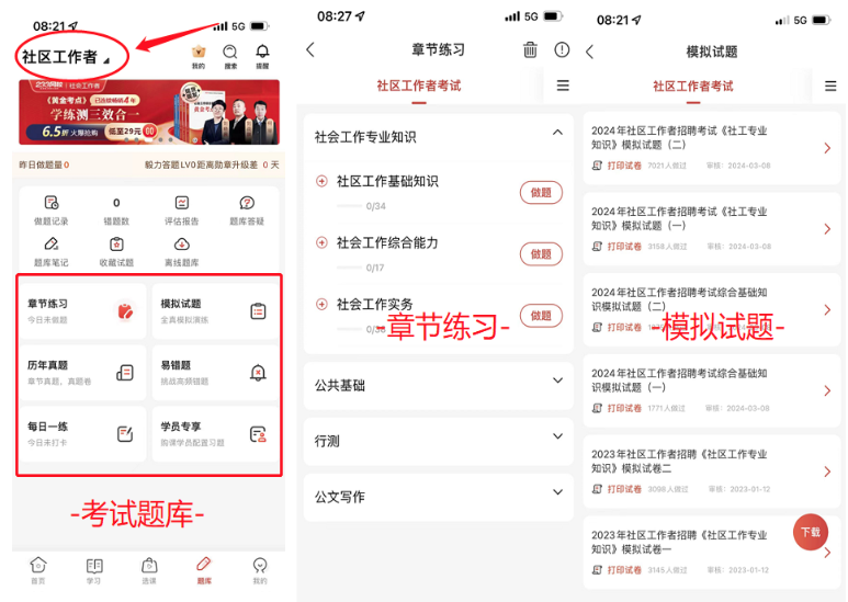 社工招聘考试下载什么刷题软件?推荐使用233网校app。在233网校app题库中,可以做章节试题、历年真题、每日一练、模拟试题,233网校app在手,考试不在愁。 体验233网校题库>>