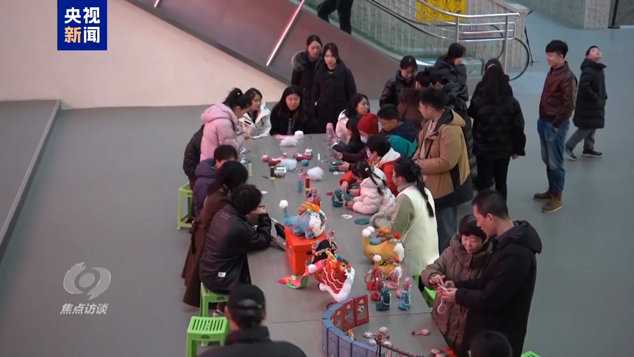 专家在进行专业的修复,观众的新春体验活动也已经开始。