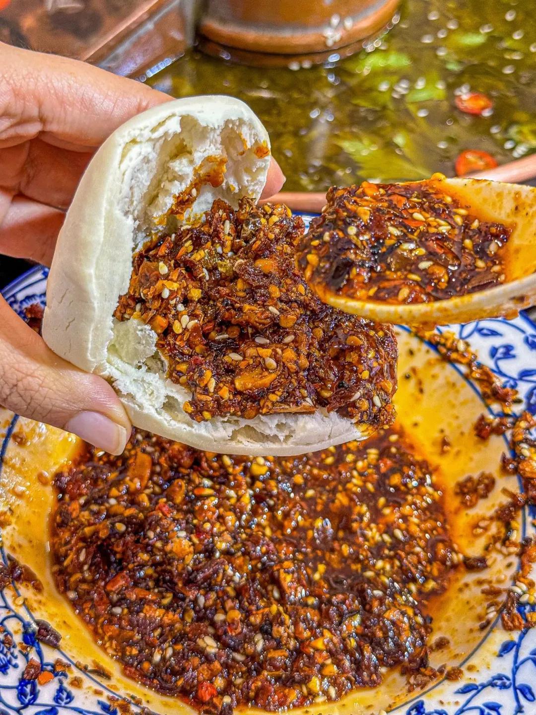 其中宝鸡最最最最招牌的就是桌上的油泼辣子和臊子!可拌面、可夹馍、可炒菜、可做酱料、可做蘸碟,甚至还能煮火锅。