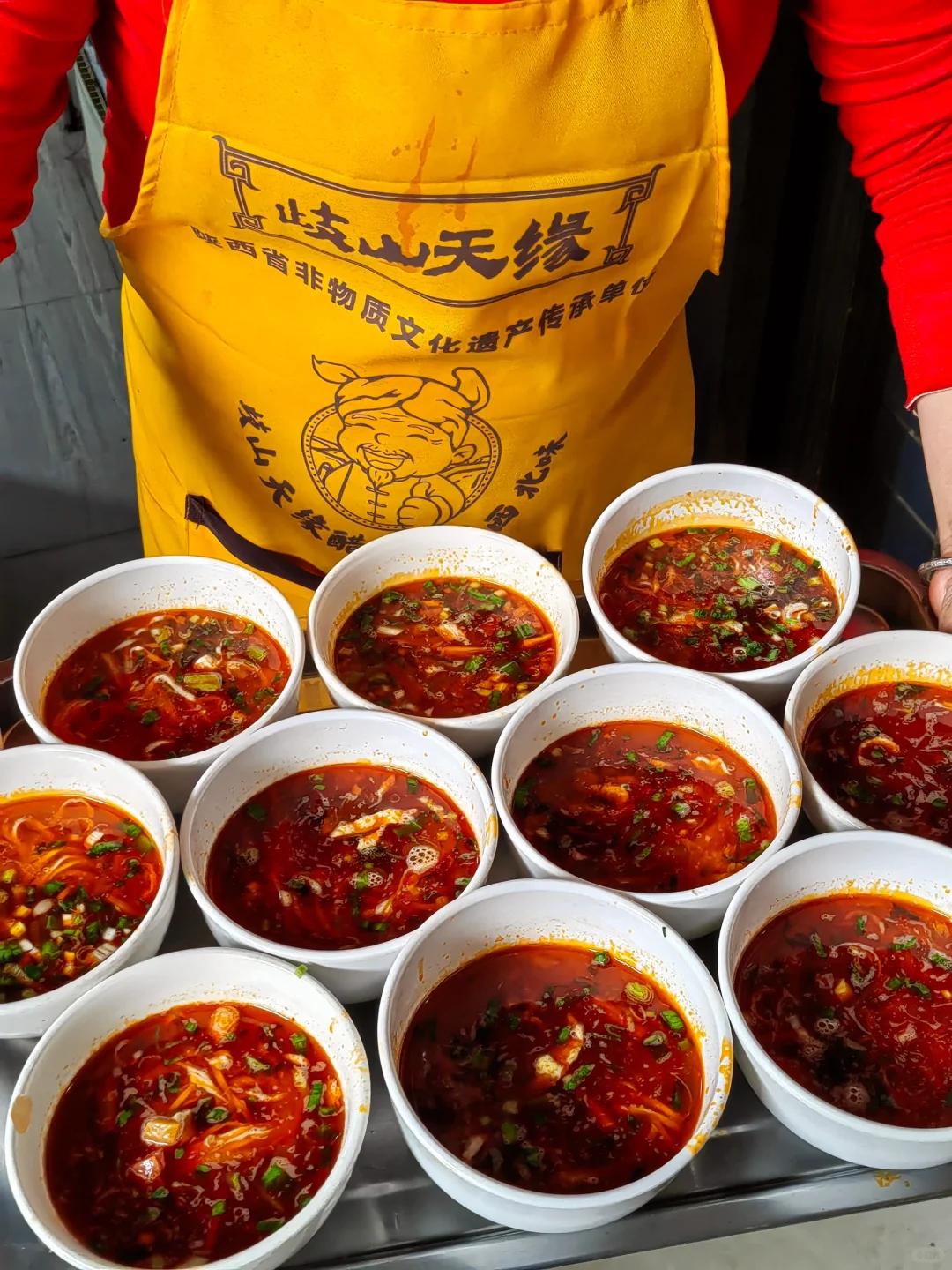 臊子面,擀面皮,烙面皮,西府扯面,豆花泡馍,醋粉,血条面,搅团,酸汤素饸饹,鹿糕馍……数不过来的美食。