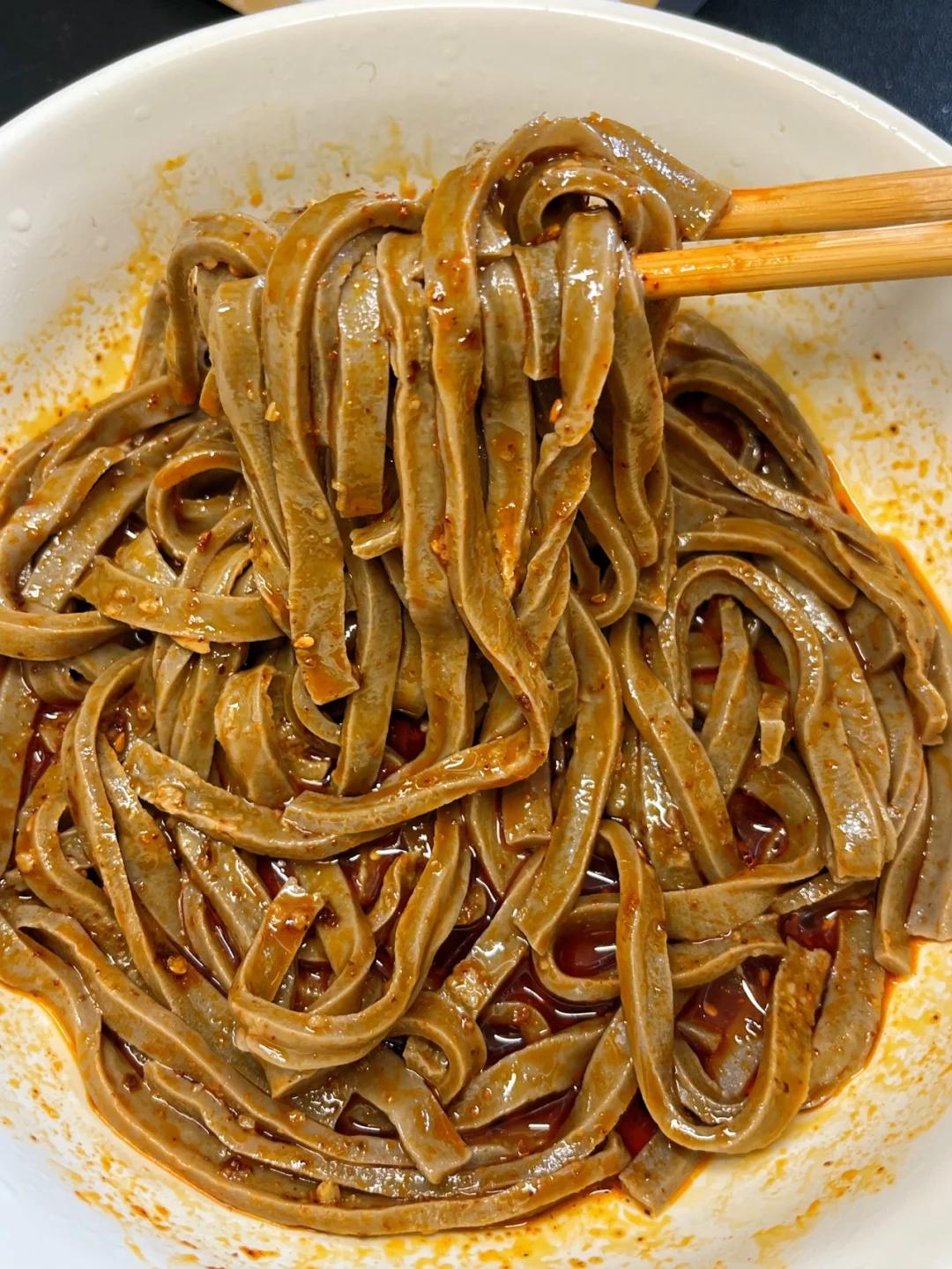 用河水制作而成的醋粉,自带着一股麦香和清甜,在加上醋、盐、蒜水、油泼辣子,醋粉便做成了。