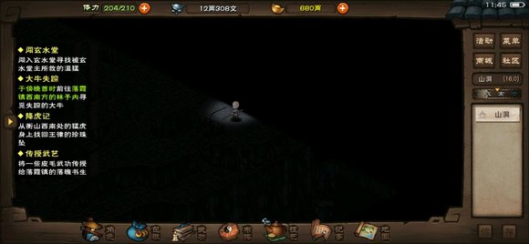 华山玉女峰有个隐藏的洞,WIKI上没有写,不知道大家有没有找到,华山(34,4),进去之后有上下两层,下面没看见有什么东西,山洞(2,27)雁九可以去上层,这里正好火折子没了,将就着看吧,然后上层有两个箱子,一个位置没记住拿了就没了,地方不大很容易找,还有一个在山洞(16,0),然后山洞里(5,1)还有一个洞,进去是一间房间,里面没看见什么东西,不知道是有剧情还是就是一个探索元素