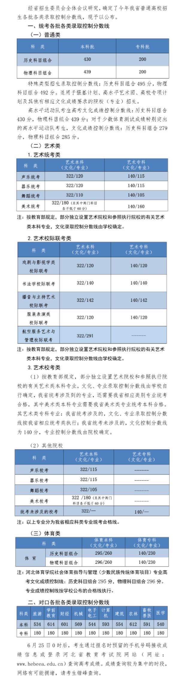 6月24日,省招生委员会召开全体会议,划定了我省2023年普通高校招生各类别各批次最低投档控制分数线如下: