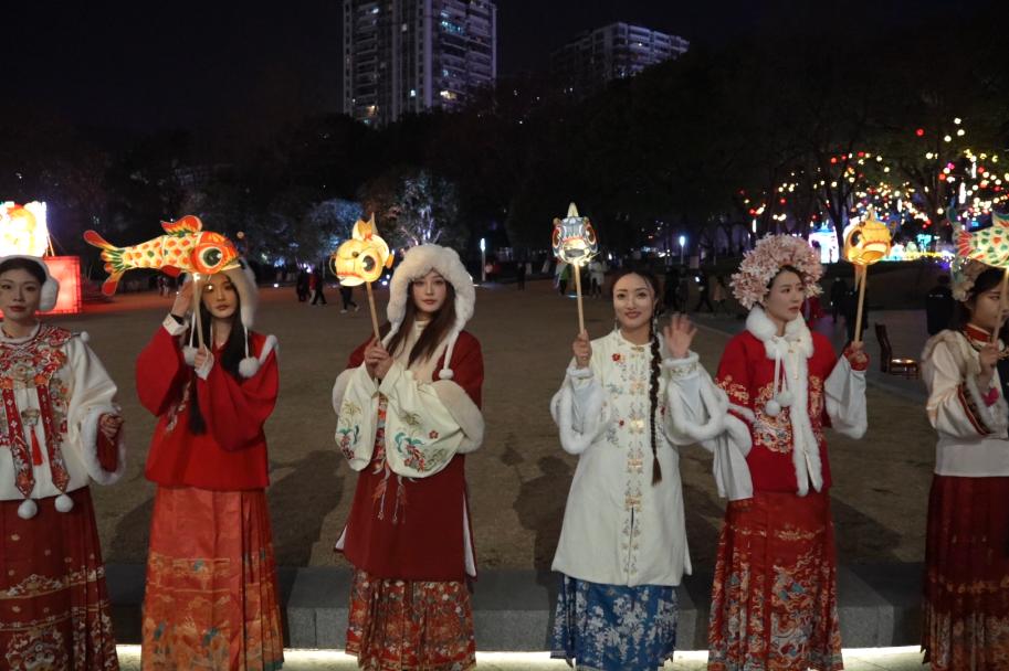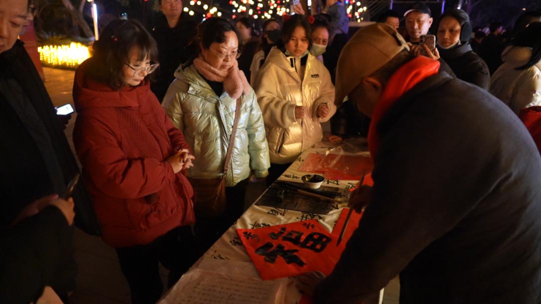 除了花灯秀,现场还有众多沉浸式互动表演,在昭君灯组旁与 “昭君” 以诗相和、礼魂处书写春联福字,墨香四溢、云中君旁变脸艺术与喷火表演精彩上演......