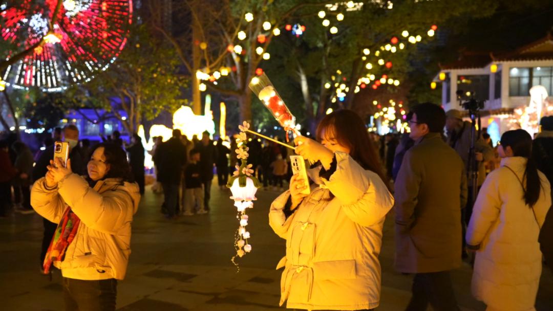 既能尝鲜,又有童趣,美食街荟萃诸多特色美食,如「老字号彭桂花」,“宜昌伢”几乎人手一杯,“这个味儿从小喝到大的!”王女士带着女儿来逛灯会,她说:“新年回老家让她也尝尝宜昌特色!”