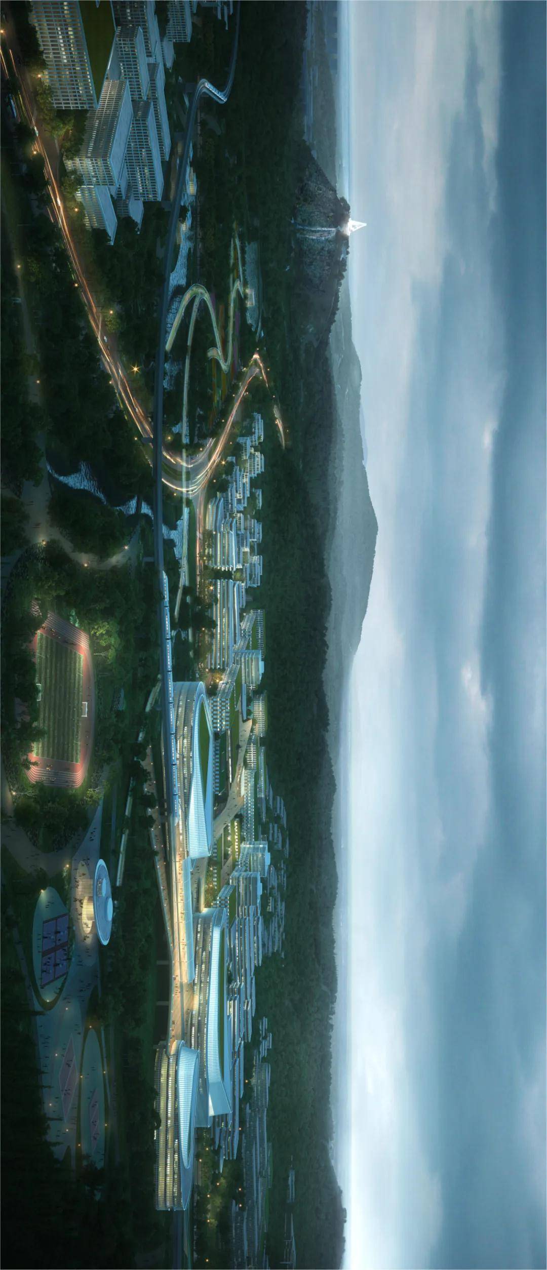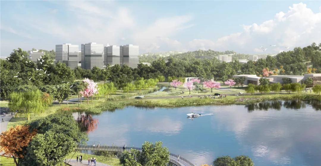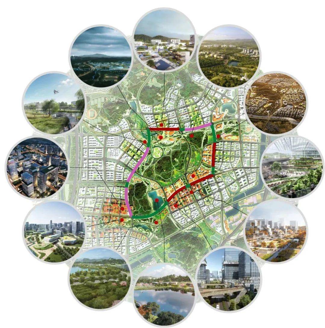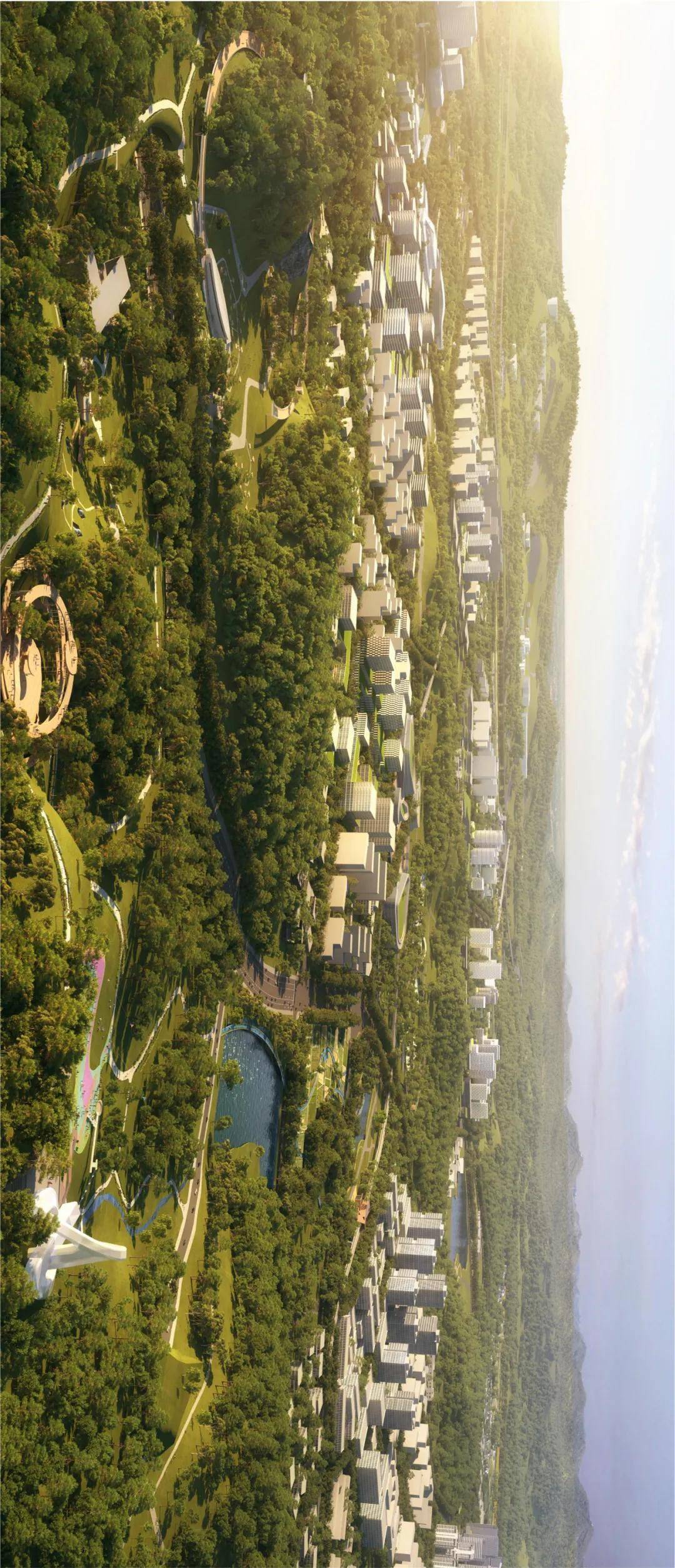 紫东地区核心区山水环绕,山林、果木、田园交融,城市设计在充分认识与尊重山水格局的基础上展开,集中展现江南丘陵地区城市核心区的风貌特色。