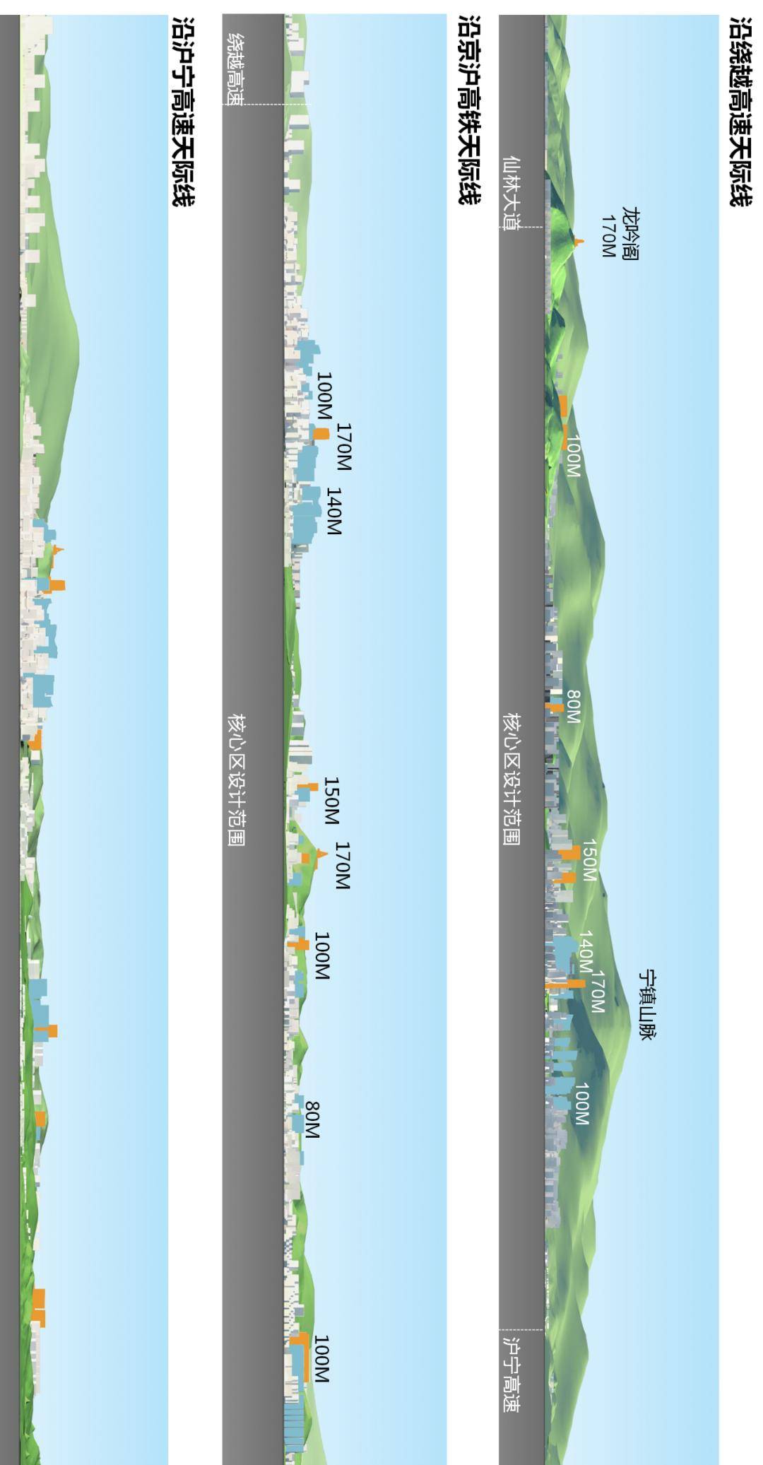 城市设计顺应了核心区丘陵起伏、山水林田交相融合的自然特征,紫东地区核心区将建立起“一脉一带两心三环三版块”的空间结构。