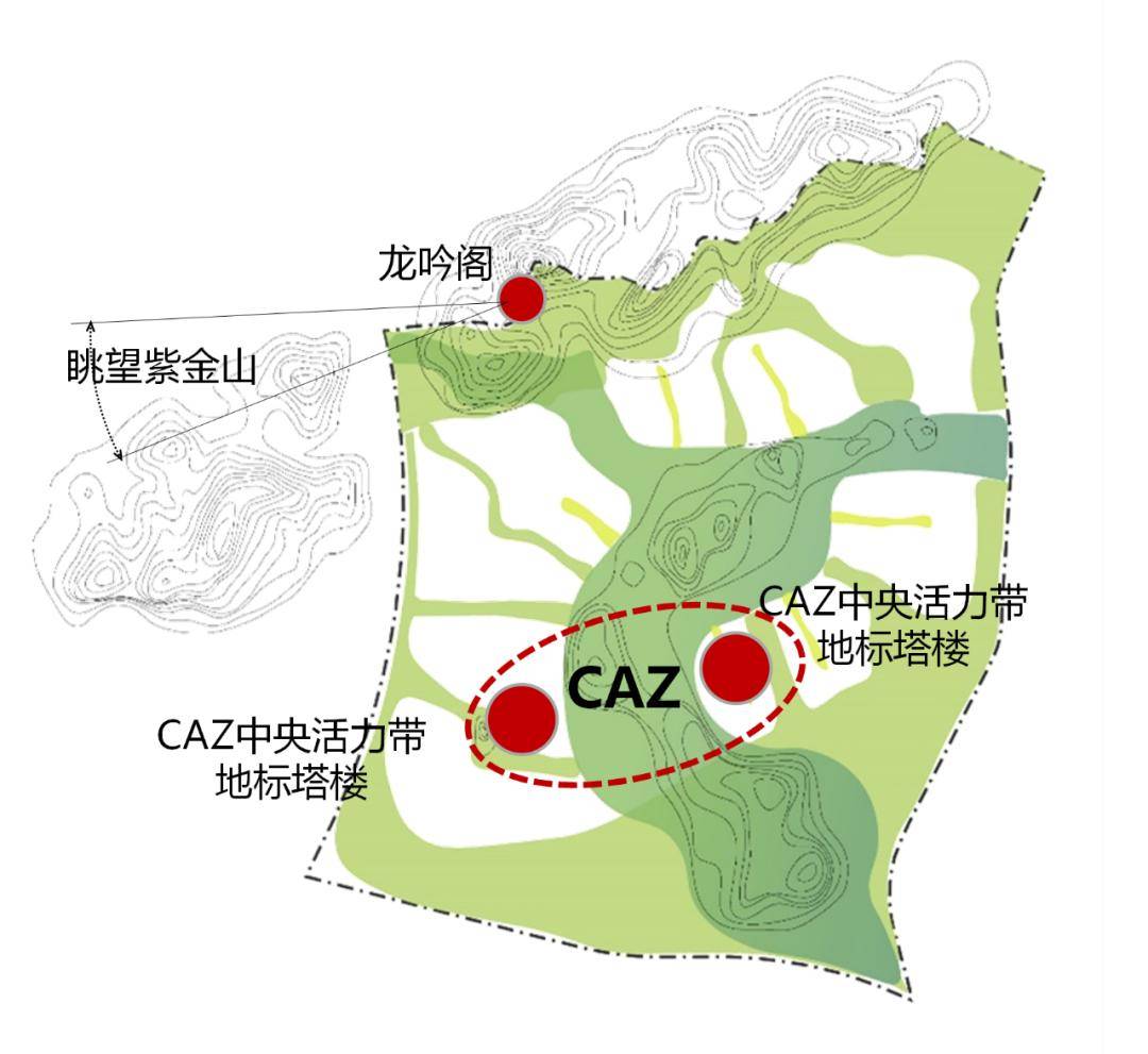 CAZ将汇聚商业商务、政务服务与管理、文化展示、会务交流、文旅休闲、健康医疗、数字产业研发等重要公共服务内容,是中央绿脉和整体生态廊道的主体段落,将构建生态良好、景色优美、服务完善的绿色游憩场所和多层次的视觉通廊和观景交流平台,在山水林田间打造疏密有致的城市客厅。