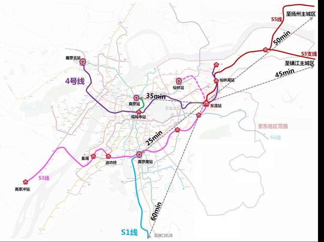 实现50分钟辐射宁镇扬主要市级中心及交通枢纽、20分钟覆盖紫东地区主要地段中心、10分钟服务核心区内部主要节点的时空通达圈;