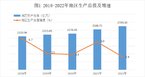 初步核算,全年地区生产总值2743.10亿元,比上年增长2.8%。其中,第一产业增加值234.38亿元,增长4.6%;第二产业增加值1576.21亿元,增长2.4%;第三产业增加值932.52亿元,增长2.8%。三次产业结构比为8.5∶57.5∶34.0。按常住人口计算,人均地区生产总值83801元。非公有制经济增加值1394.77亿元,占全市生产总值的比重为50.8%。
