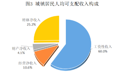 城乡居民人均可支配收入指调查期内城乡居民家庭成员人均获得的、可用于最终消费支出和储蓄的总和,即居民可以用来自由支配的收入,既包括现金收入,也包括实物收入。城乡居民可支配收入可以体现各地区城乡居民收入及生活水平变化情况。按照收入的来源,可支配收入包含四项,分别为:工资性收入、经营净收入、财产净收入、转移净收入。