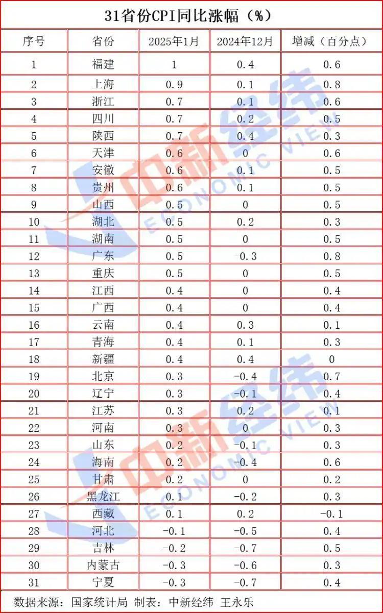 #放榜31省份1月CPI出炉:27地上涨,宁夏“11连降”