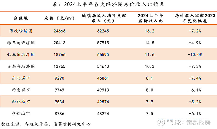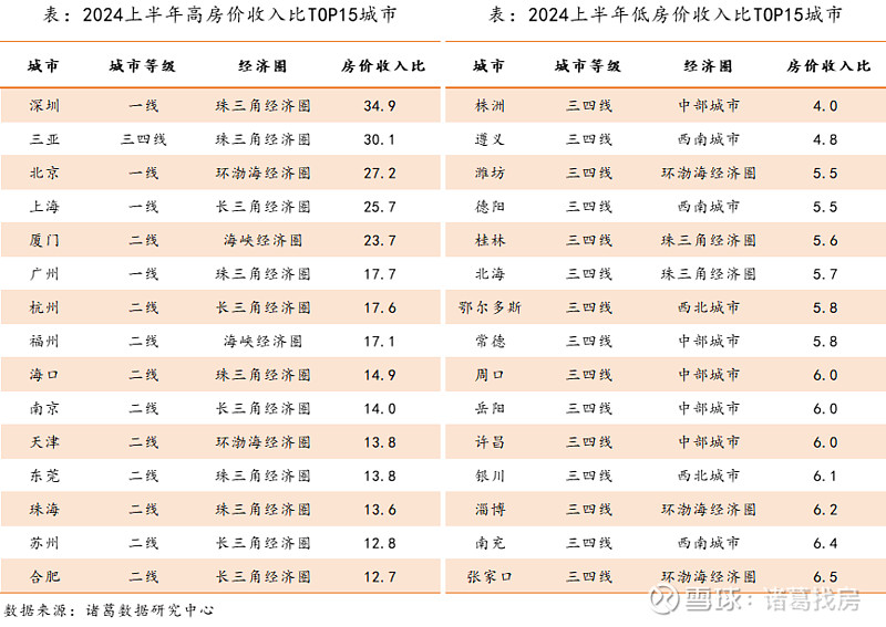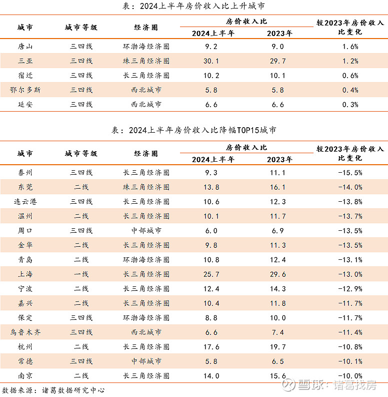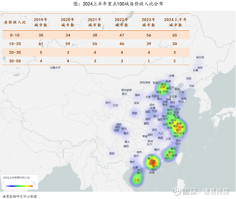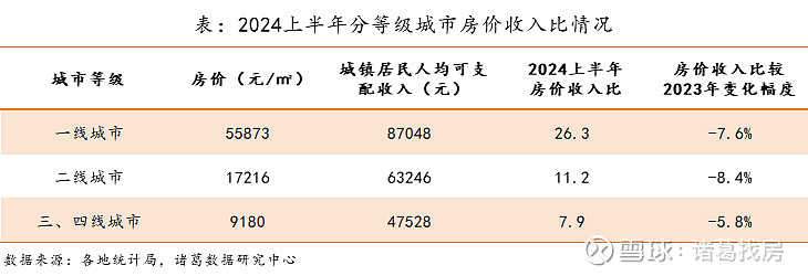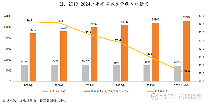 2024上半年百城房价收入比跌破11,一线城市降幅扩大 诸葛数据研究中心通过对100个重点