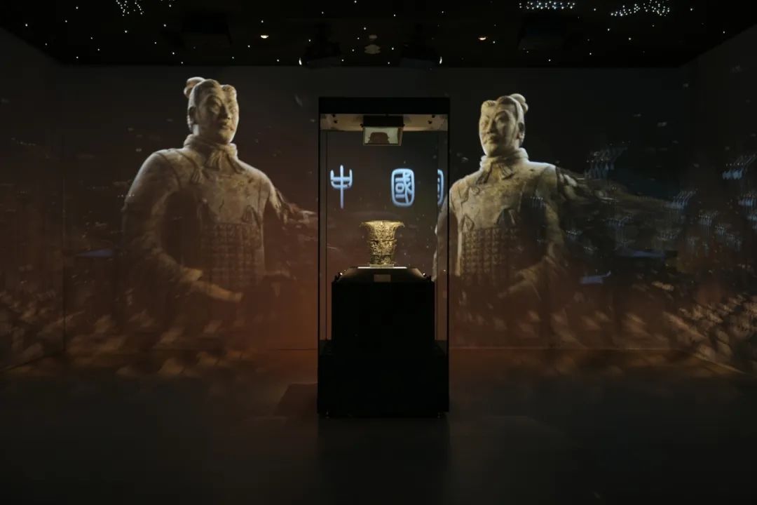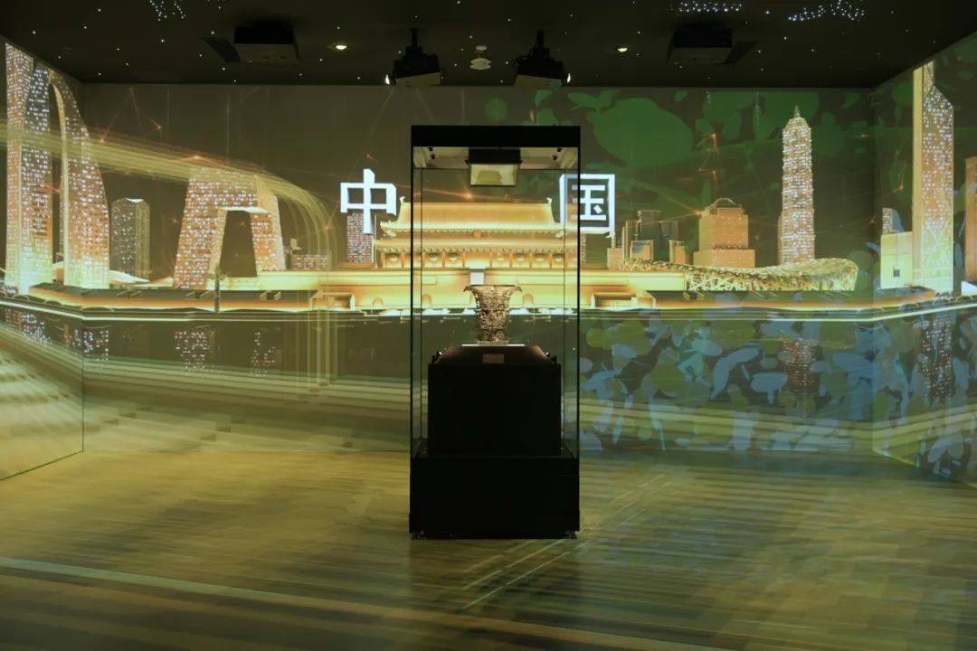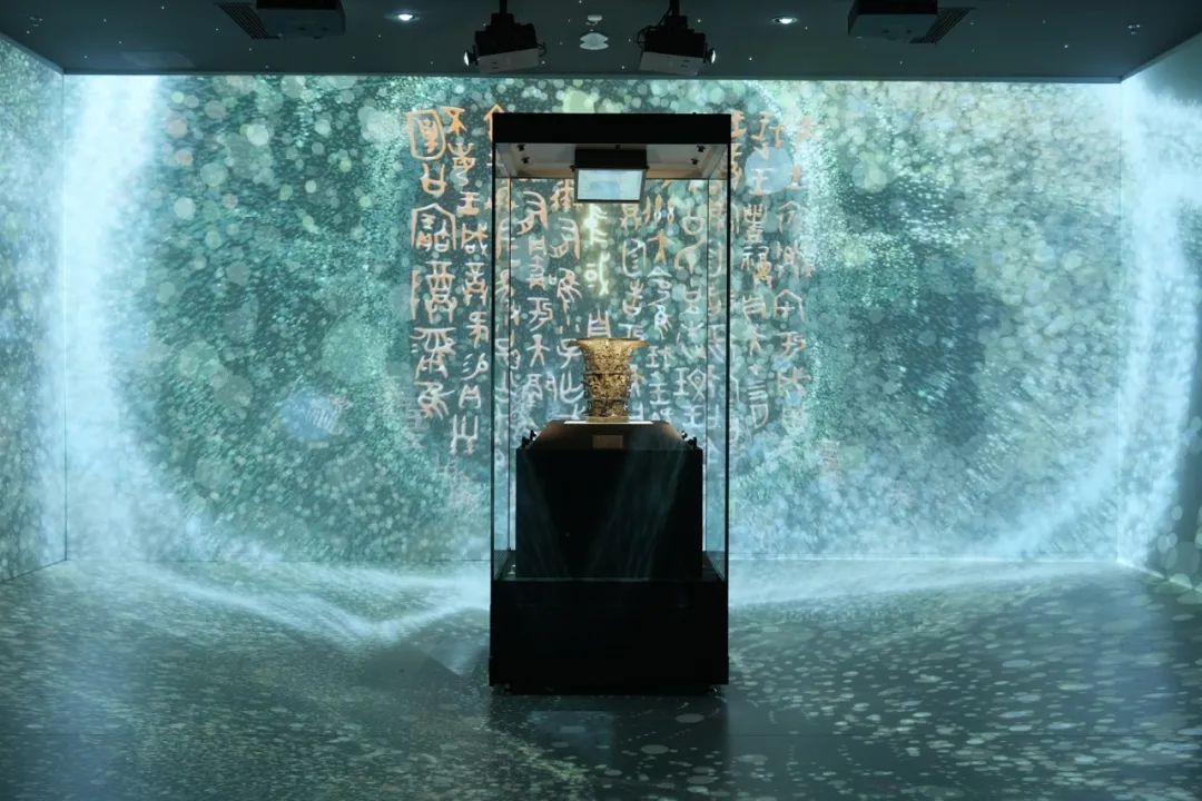 展厅中,何尊的铭文通过投影的方式震撼呈现,游客可以清晰看到铭文中的“中国”二字。