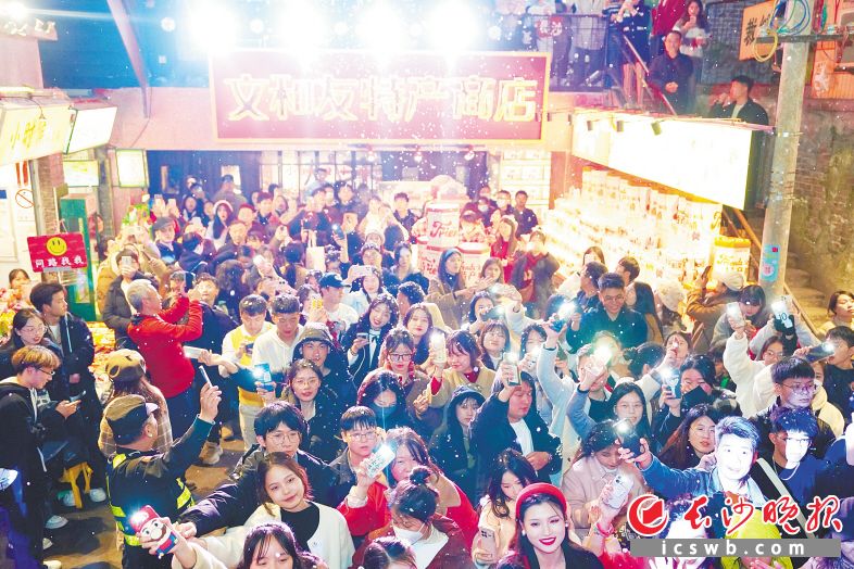 元旦假期长沙11家重点餐饮企业营业收入较前一年同期增长202.71%。图为市民游客参加文和友举办的跨年活动。
