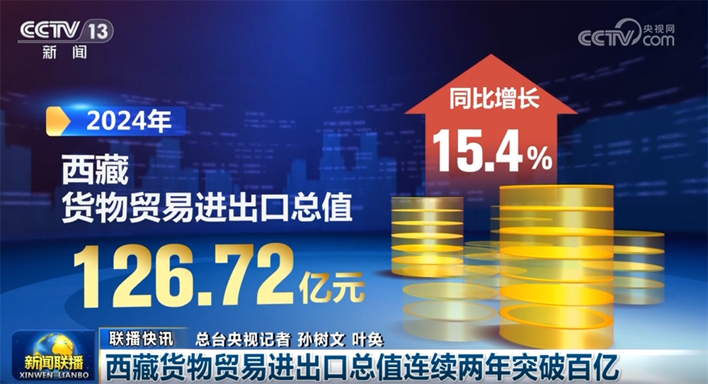记者从拉萨海关获悉,2024年西藏货物贸易进出口总值126.72亿元,同比增长15.4%,连续两年突破百亿,规模再创新高。目前,西藏已实现各地市外贸全覆盖,贸易伙伴拓展至140个国家及地区。