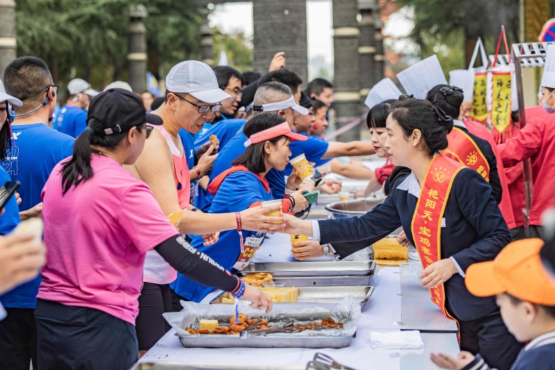 为了提升参赛选手的体验感,本次马拉松赛事在服务和保障方面也做出了诸多努力。针对有意愿参赛的选手和观众,组委会特别在西安至宝鸡间专门定制了“宝鸡马拉松专列”,在市区调配了450辆公交摆渡车,以便大家更加快捷地前往赛场。此外,“美食上街”活动也是一大亮点。爱心企业在赛道沿途设立了多个美食供给点,提供了包括凤阁岭苹果、富硒石头饼、猕猴桃果汁等丰富多样的特色美食,让选手们在奔跑的间隙也能品尝到宝鸡的美味。