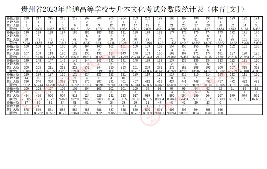 原标题:《贵州2023年专升本文化考试分数线及分数段统计表公布》