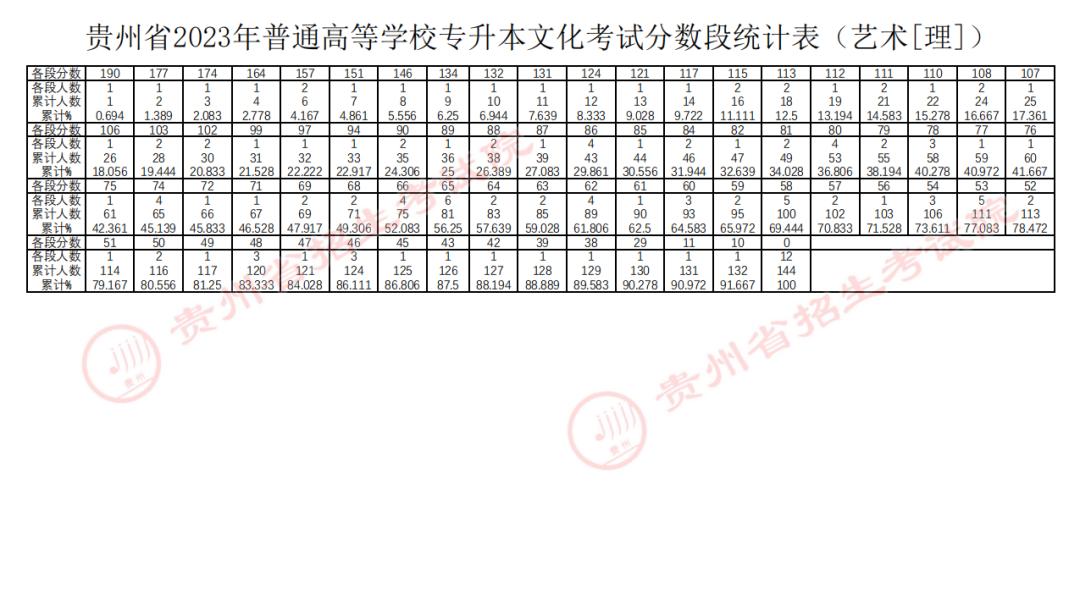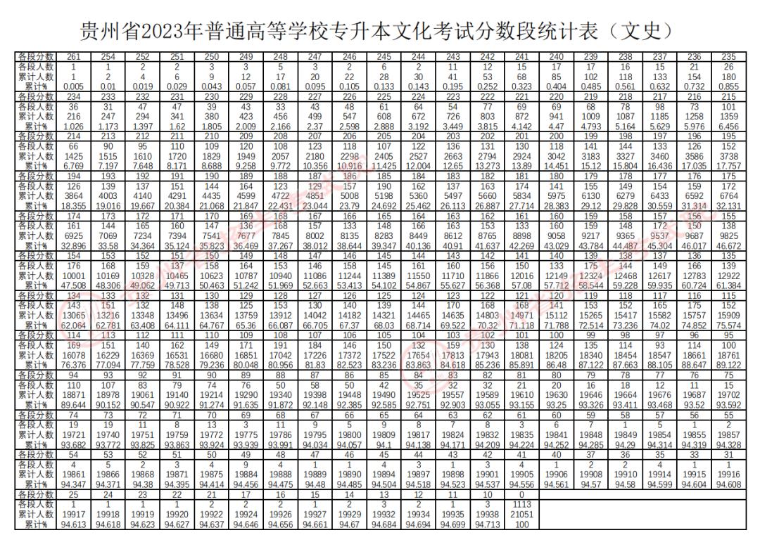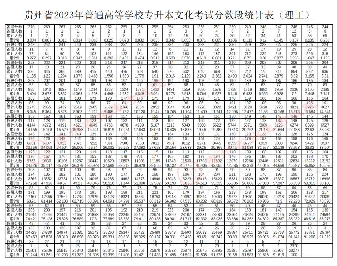 贵州2023年专升本文化考试分数线及分数段统计表公布