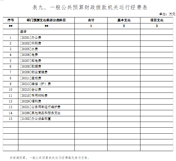 8、机关运行经费:为保障行政单位(包括实行公务员管理的事业单位)运行用于购买货物和服务的各项资金,包括办公及印刷费、邮电费、差旅费、会议费、福利费、日常维修费、一般设备购置费、办公用房水电费、办公用房取暖费、办公用房物业管理费、公务用车运行维护费以及其他费用。