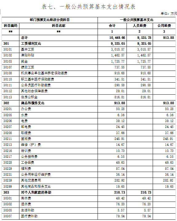 其中:人员经费支出9,535.78万元,主要包括:基本工资、津贴补贴、奖金、绩效工资、机关事业单位基本养老保险缴费、职工基本医疗保险缴费、公务员医疗补助缴费、其他社会保障缴费、住房公积金、离休费、退休费、生活补助、医疗费补助。