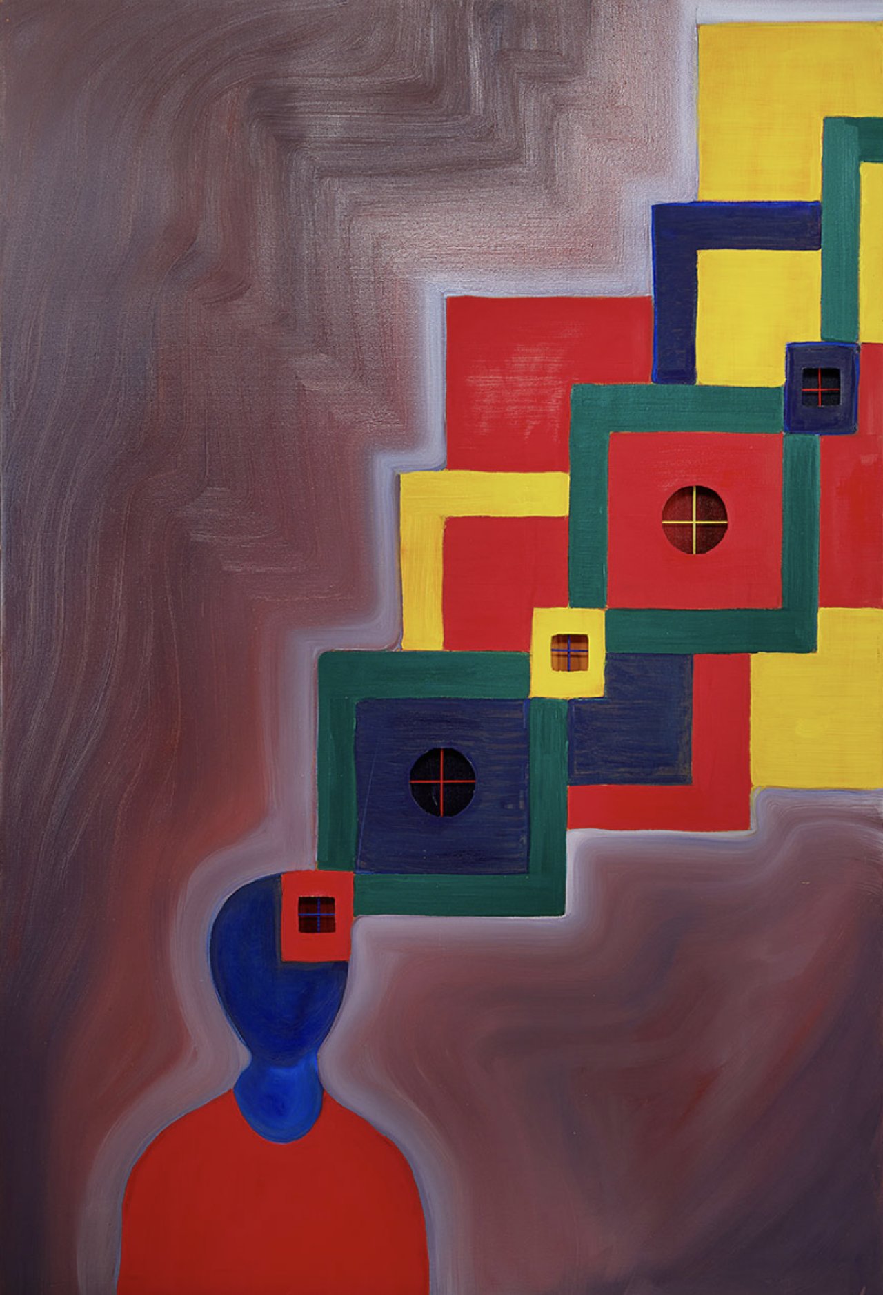 在他的画作中,红、黄、蓝、绿、黑勾勒出的人形带着隐秘的禅意,色彩不只是眼前的色彩,而是构成万物的能量,奥兰希望提醒自己以及观众思考那些永恒的问题:我们是谁?我们从何而来又要前往哪里?同时,奥兰还把从中国传统园林的花窗、八卦、五行,甚至《道德经》《易经》《庄子》等中国经典中汲取的灵感融入作品中,赋予更多窥视人生的思考。