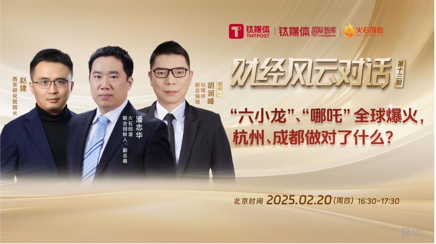 第十三期《钛媒体财经风云对话》,主持人钛媒体副总编辑、钛媒体国际智库执行院长胡润峰,特邀西京研究院院长赵建,火石创造联合创始人、副总裁潘志华,共同揭秘杭州、成都的成功之道。