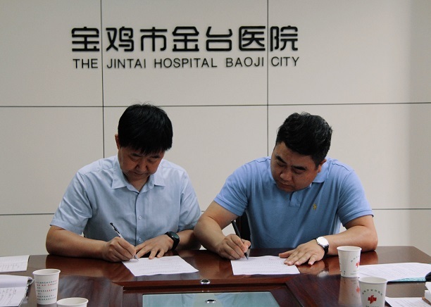 金台区计划生育协会副秘书长卢立林和金台医院院长任文生签订医疗设备发放协议书,任院长代表金台医院对于设备管理、使用做了表态发言。