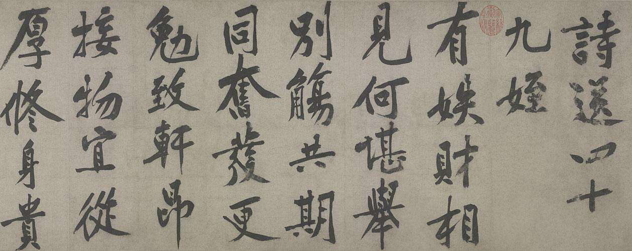 展出汉代瓦当墨拓、晋王羲之《孝女曹娥碑》、元鲜于枢《论张旭怀素高闲草书》、明文徵明《自书诗帖》、明沈度《隶书归去来辞》等近20件古代书法珍品,揭示历代书法发展脉络。