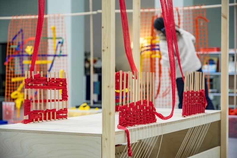 “编织,一起吗?” 由法国建筑师兼艺术家艾米丽·克内(Émilie Queney)与蓬皮杜中心合作设计,是一项大型公共编织项目,涵盖多台可移动织机和编织基站。公众可随心选择美术馆中庭的任意角落进行编织,自由交织塑料网、拉链、织带和布料等多种材料,巧妙融合色彩与肌理,共同创作充满活力的织物作品。这一互动式装置不仅赋予编织更多可能性,也鼓励参与者在开放的艺术空间中探索创意与协作的乐趣。