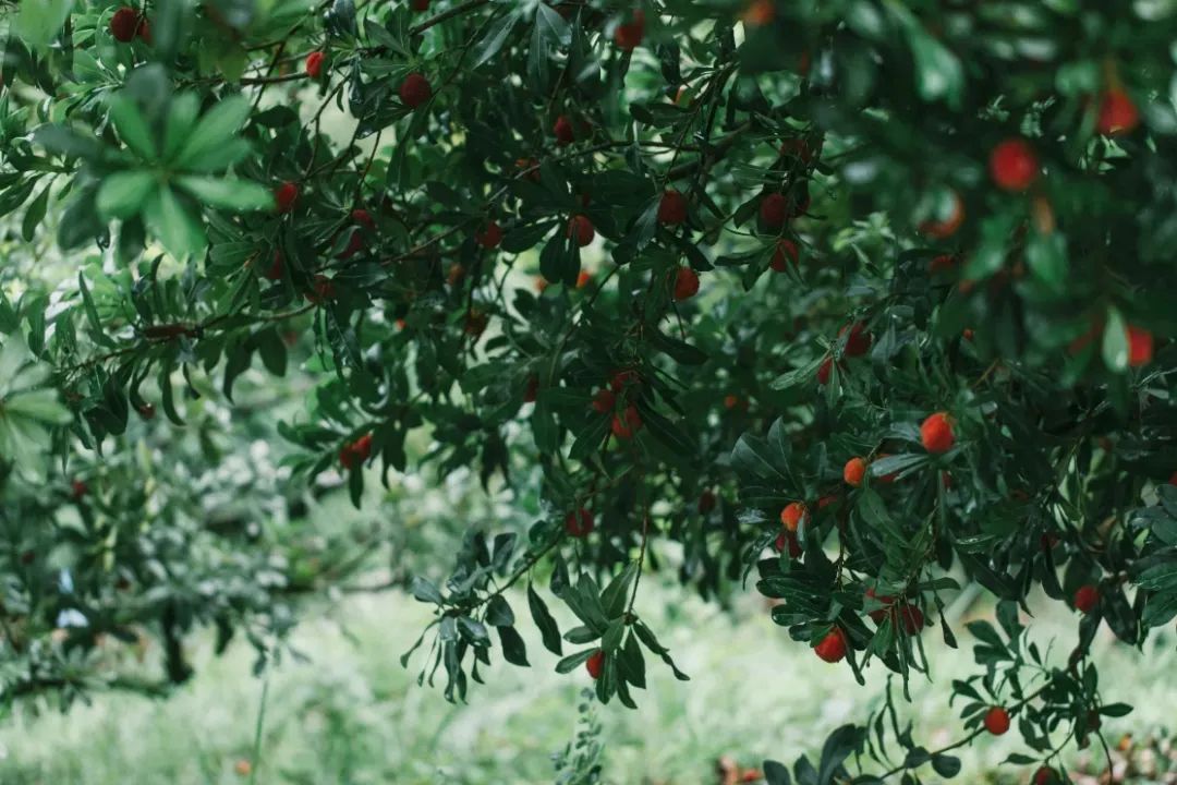 ▲ 在雾中生息的仙居杨梅,颗颗灵动。(图1、2 | 粥粥的周 © )
