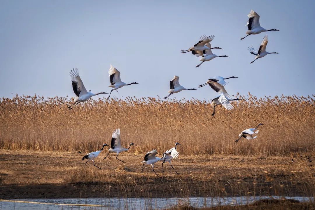 日出日落的滩涂之上,金光随波而变。到了秋季,渔民们会在这里拉竿挂绳,养护收割,满滩满海的人影船影,等的就是这一年的收成。