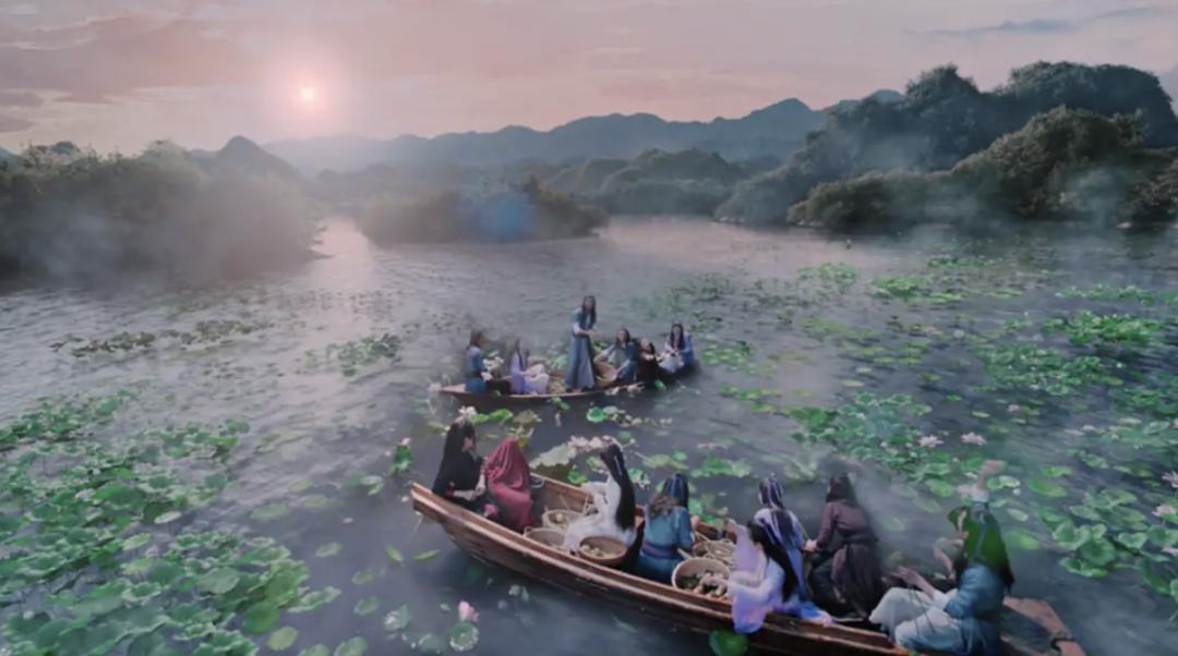 ▲ 《陈情令》中,云梦莲花坞的灵感正是源自云梦县。另一说是云乃广阔之意,梦是楚国方言“湖泽”。云梦就是大的湖泽。(图 | 《陈情令》©)