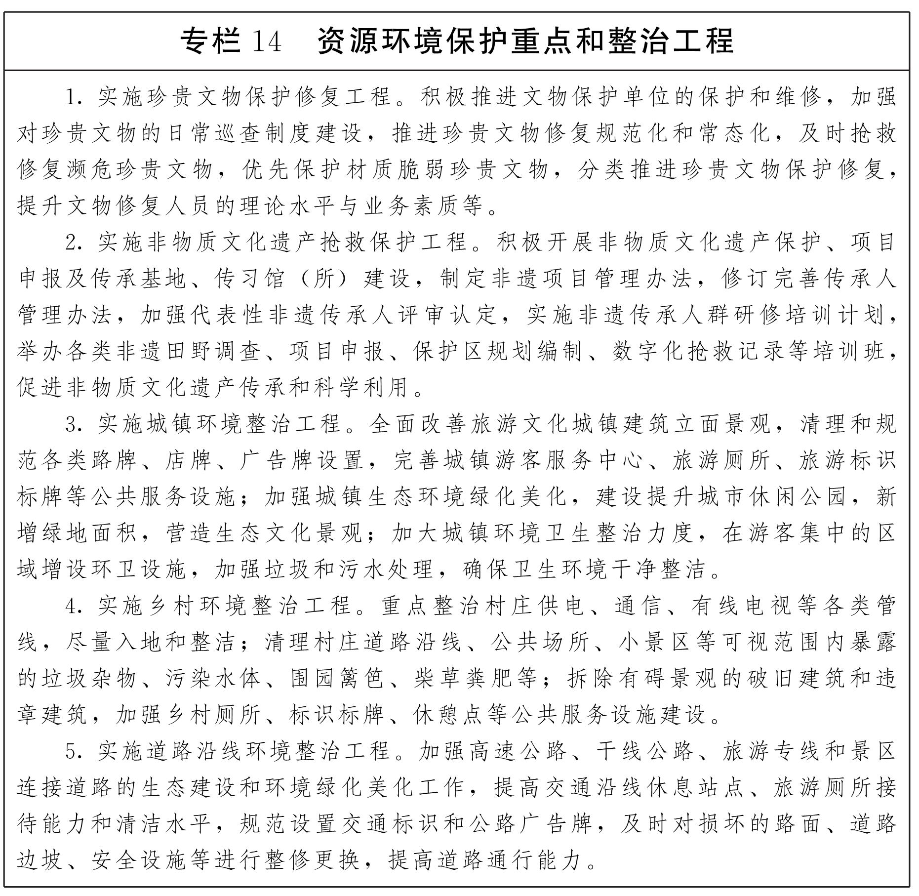 4.实施城乡环境整治工程。实施旅游文化城镇容貌整治提升工程,建设提升城市休闲公园,营造生态文化景观,加强城镇生态环境绿化美化,加大城镇环境卫生整治力度,完善城镇旅游文化公共服务设施等。实施特色旅游文化乡村环境整治工程,清理村庄道路沿线、公共场所、小景区等可视范围内暴露的垃圾杂物等,整治各类管线,拆除违章建筑,加强乡村公共服务设施建设等。(省住房城乡建设厅牵头;省发展改革委、财政厅、环境保护厅、交通运输厅、农业厅、旅游发展委,各州、市人民政府配合)