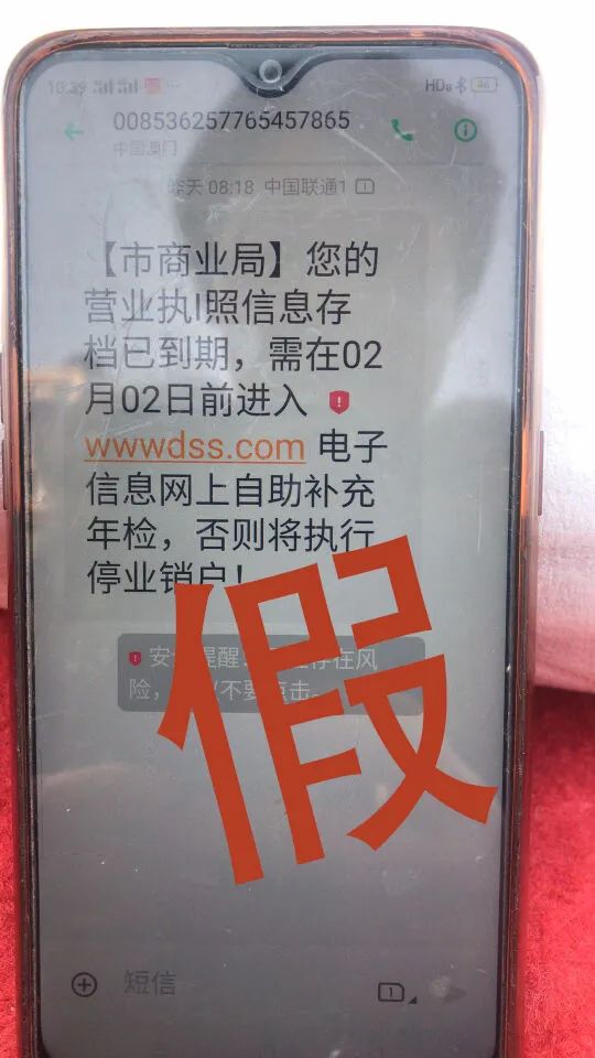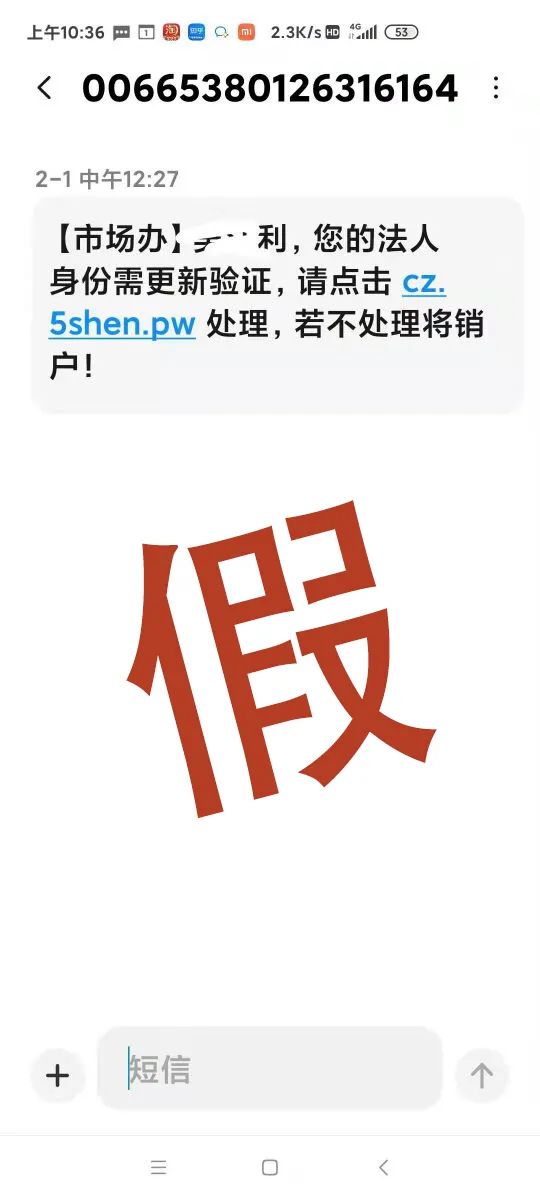 市场监督管理局不会用短信链接的方式要求商户企业进行电子营业执照升级更新、年报登录、个人认证更新等操作。发现类似情况,不要点击、不要回复,并及时与市场监督管理局官方确认。