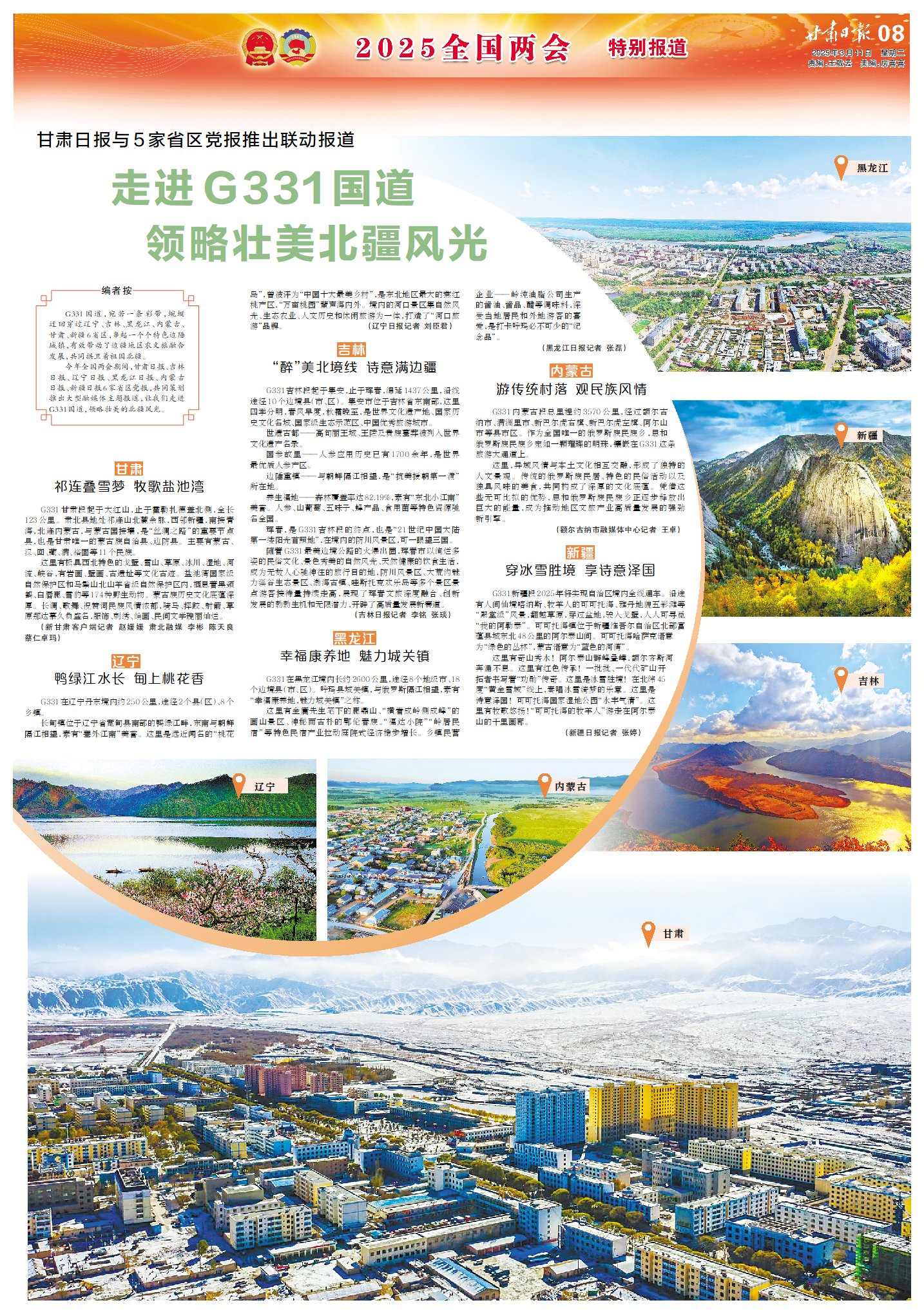 今年全国两会期间,甘肃日报、吉林日报、辽宁日报、黑龙江日报、内蒙古日报、新疆日报6家省区党报,共同策划推出大型融媒体主题报道,让我们走进G331国道,领略壮美的北疆风光。