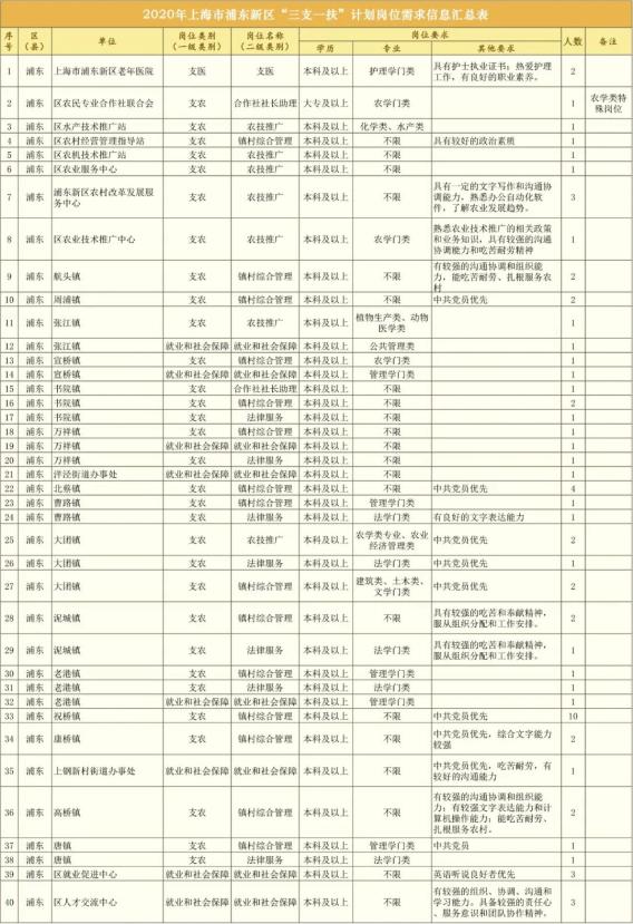 今年“三支一扶”开始岗位报名啦!浦东40个岗位详情看过来→
