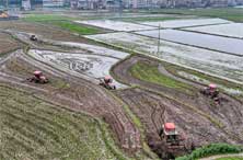 近日,在“渝东粮仓”重庆市梁平区,当地农民抢抓农时进行春耕春管农业生产,田间地头一派农忙景象。