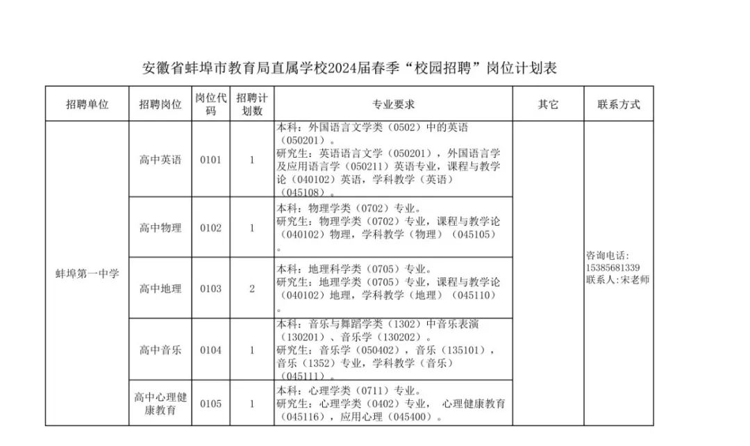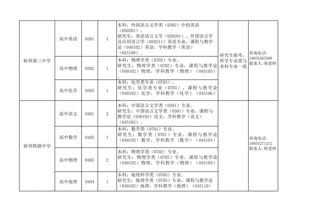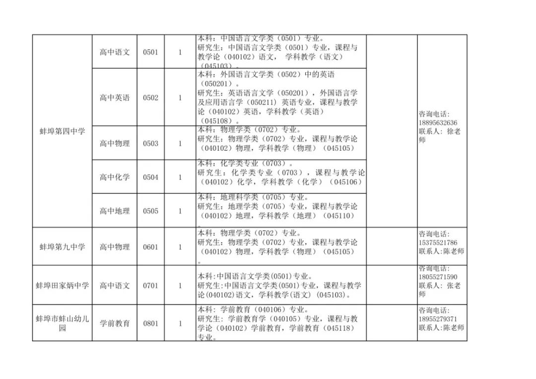 咨询电话:0552-2044954(蚌埠市教育局人事科)