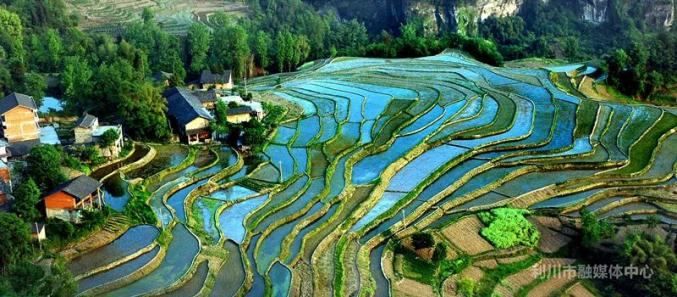 “山光淡淡水溶溶,知是蓬莱第几峰?”。层峦叠翠,山水空濛。和着早春泥土的清香,朦胧的薄雾在山腰婀娜缠绕。螺峰肃穆,梯田沉静,山水和谐,人景相融,古老而神奇的土地,勤劳淳朴的土家山民,他们用布满茧子的双手,将希望的阶梯,一步步垒好。